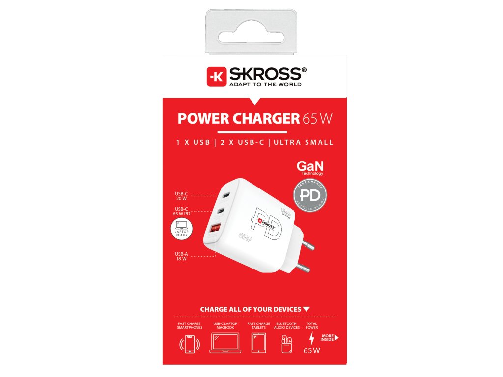 SKROSS USB A+C nabíjecí adaptér Power charger 65W GaN EU, Power Delivery, typ C
