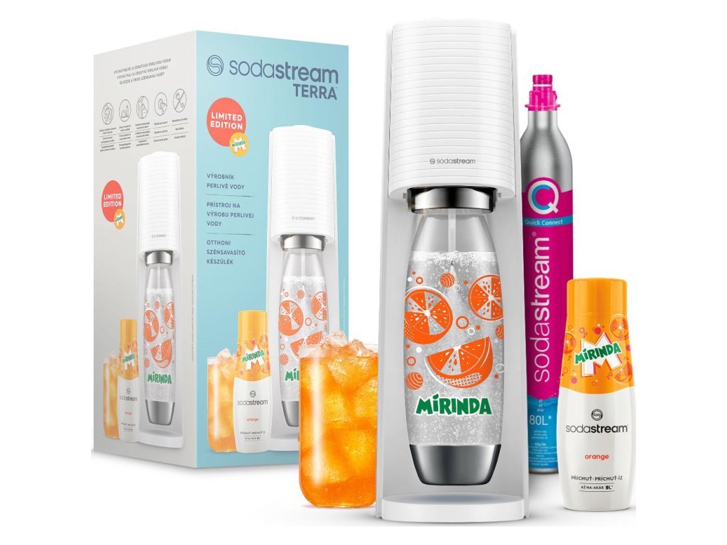 Hravý design, ikonická chuť a prémiové provedení! Výrobník perlivé vody SodaStream TERRA nyní přichází v limitované edici Mirinda, která přináší nejen osvěžující ovocnou chuť, ale také stylový vzhled. Elegantní bílé provedení kombinuje matné a lesklé prvky, zatímco exkluzivní lahev se speciálním designem Mirinda poprvé obsahuje kovové prvky, které dodávají prémiový vzhled i vyšší odolnost. Navíc je sada zdarma doplněna o ikonickou příchuť MIRINDA o objemu 440 ml. Příchuť je připravena dle receptury v koncentrovaném stavu a po přidání do perlivé vody si připravíte nápoj, tak jak ho máte rádi. Váš oblíbený nápoj si nyní můžete kdykoliv připravit v pohodlí vašeho domova. Vystačí až na 9 litrů hotového nápoje. Lahve do výrobníku se vloží pouhým zacvaknutím. Nemusí se šroubovat.