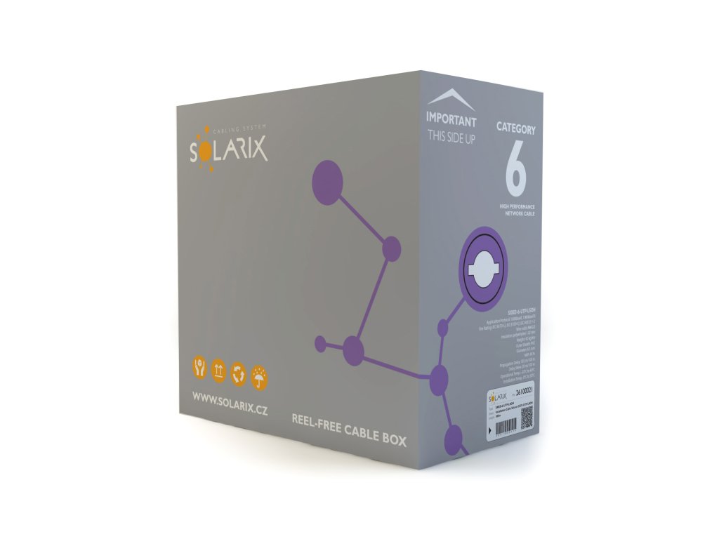 Instalační telekomunikační kabel (tzv. kabel drát) Solarix - CAT6 je vysoce kvalitní kabel určený pro horizontální rozvody strukturované kabeláže, který splňuje a rovněž převyšuje požadavky specifikované v mezinárodních standardech TIA/EIA 568, EN 50173 a ISO 11801 pro CAT6. Vodiče kabelu jsou vyrobeny z velmi kvalitního měděného drátu o velikosti AWG 23; v případě nestíněné i stíněné verze kabelu kategorie 6 jsou jednotlivé páry odděleny plastovým křížem. Kabel Solarix - CAT6 je vhodný pro provoz i těch nejnáročnějších protokolů (např. 1000BaseT a 1000BaseTX). Kabel se dodává jak s pláštěm PVC, tak LSOH a to na 500 návinech.