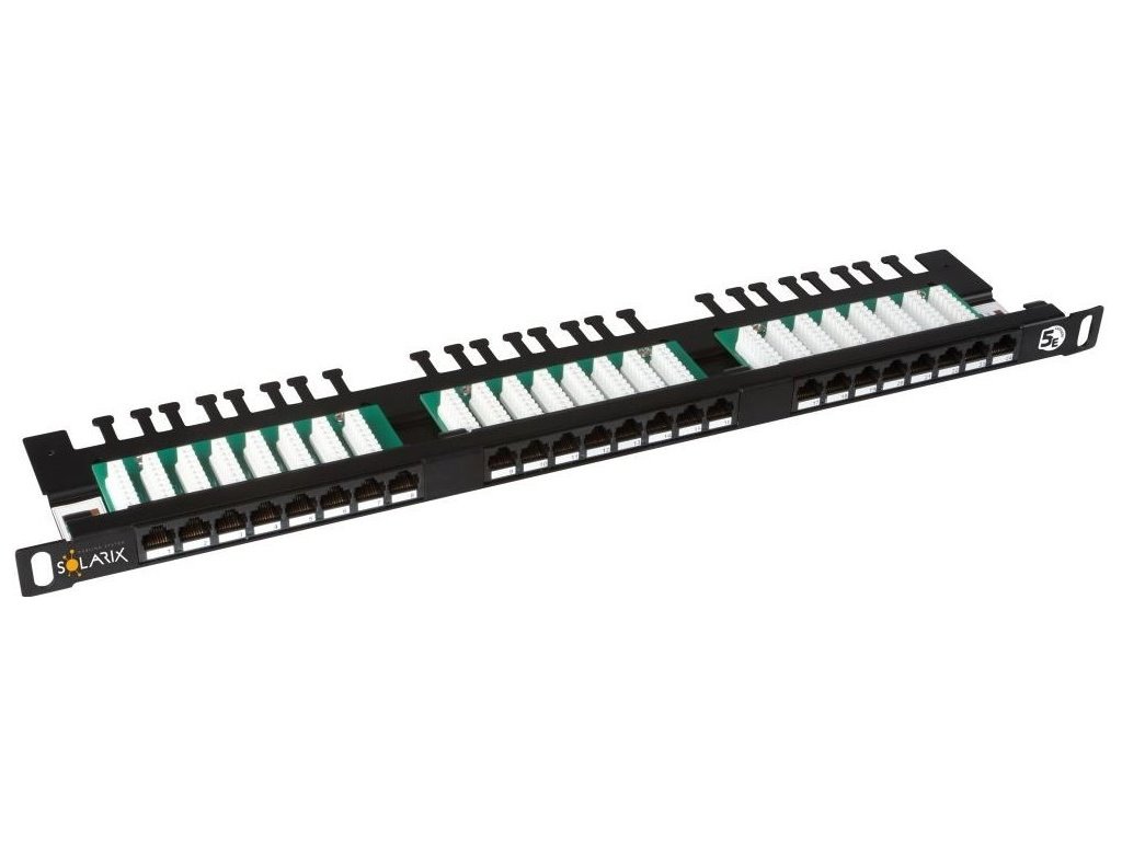 Patch panely Solarix s označením SX24HD-5E-UTP-BK jsou vysokohustotní 19" patch panely s výškou 0,5U, které jsou osazeny 24 porty RJ45 a duální IDC svorkovnicí 110/Krone. U těchto panelů je důraz kladen na maximální úsporu místa v rozvaděči, kdy do výšky 1U lze jednoduše nainstalovat až 48 portů. Tyto high-density panely Solarix jsou dostupné ve stíněném i nestíněném provedení a bez problémů splňují požadavky definované v mezinárodních standardech ANSI/TIA/EIA 568, ISO/IEC 11801 a EN 50173 včetně všech nejnovějších dodatků pro kategorii 5E. Panely jsou navrhnuty tak, aby byly robustní, spolehlivé, poskytovaly maximální výkon a umožňovaly jednoduchou instalaci. Součástí těla těchto panelů je vyvazovací lišta, která umožňuje pevné uchycení a přehledné uspořádání datového kabelu. Barva nestíněného high-density patch panelu Solarix je černá.