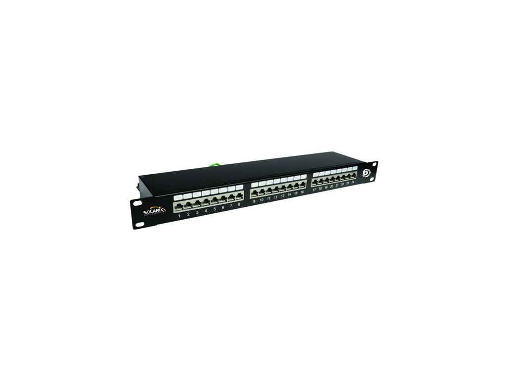 Patch panel Solarix s označením SX24-6-STP-BK je stíněný panel CAT6, který je osazen 24 porty RJ45 a IDC svorkovnicí Krone. Kontakty jsou na svorkovnici odlišeny barvami podle typu zapojení, a to buď podle standardu T568A, nebo T568B. Tento panel z produktové řady Solarix – CAT6 bez problémů splňuje a rovněž převyšuje požadavky definované v mezinárodních standardech TIA/EIA 568, EN 50173 a ISO 11801 včetně všech nejnovějších dodatků pro tuto kategorii. Panel je navrhnut tak, aby byl robustní, spolehlivý, poskytoval maximální výkon a umožňoval jednoduchou instalaci. Součástí těla panelu je vyvazovací lišta, která umožňuje pevné uchycení a přehledné uspořádání datového kabelu. Barva stíněného patch panelu Solarix CAT6 je černá; velikost v datovém rozvaděči je 1U.
