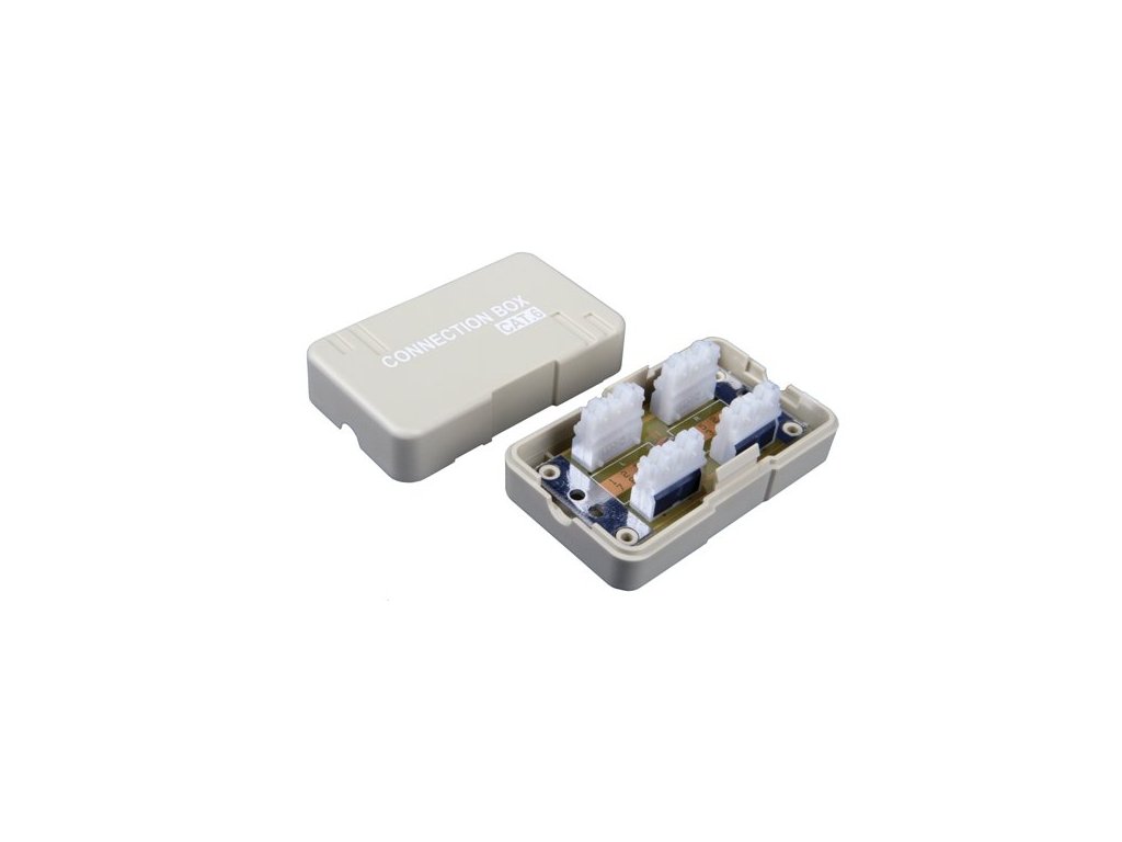 Spojovací box datového kabelu CAT6 se svorkovnicí Krone, čtyřpárový, stíněný Lze použít například pro křížové propojení dvou kabelů nebo pro jejich prodloužení či spojení. Do spojovacího boxu, který je osazen IDC svorkovnicí Krone lze zařezat vodiče o velikosti AWG 26 – 22. Všechny tyto komponenty bez problémů splňují požadavky specifikované v mezinárodních normách TIA/EIA 568, EN 50173 a ISO 11801.