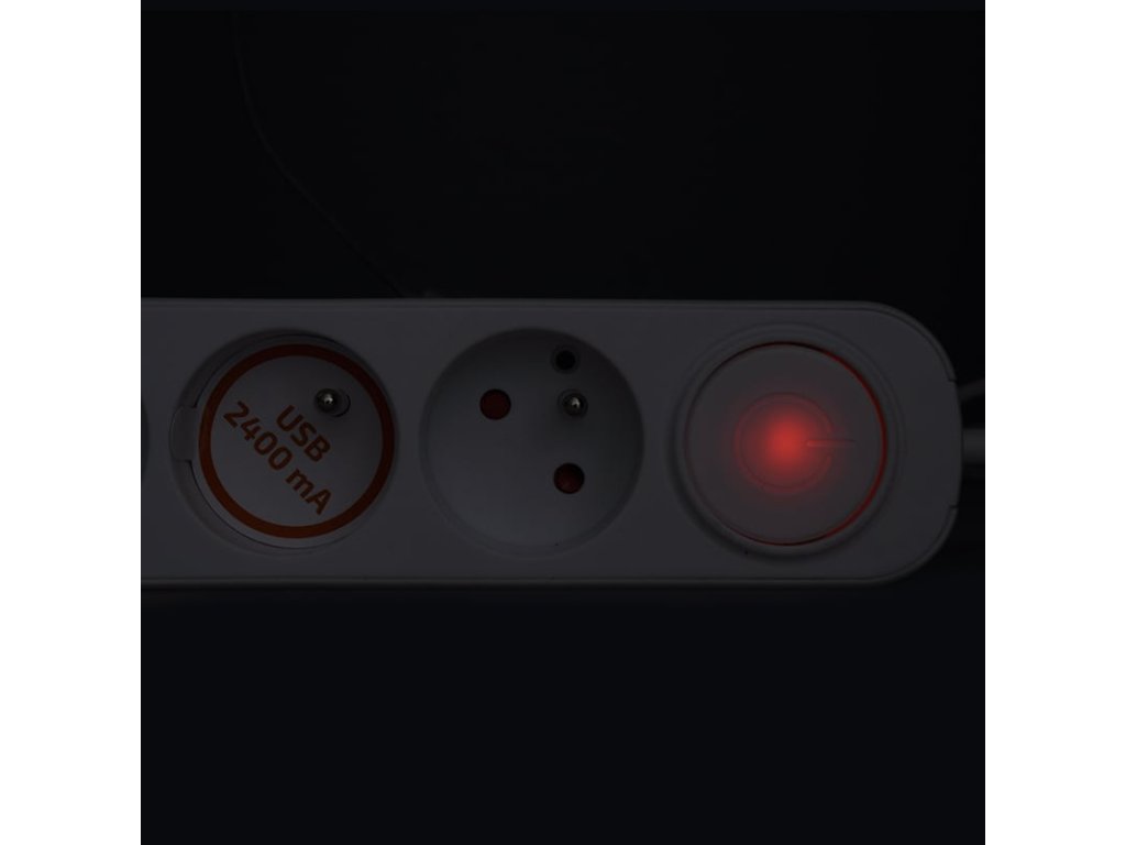 Solight 3z prodlužovací přívod s USB A+C nabíječkou 2.4A, 2m, 3 x 1mm2, bílý, vypínač