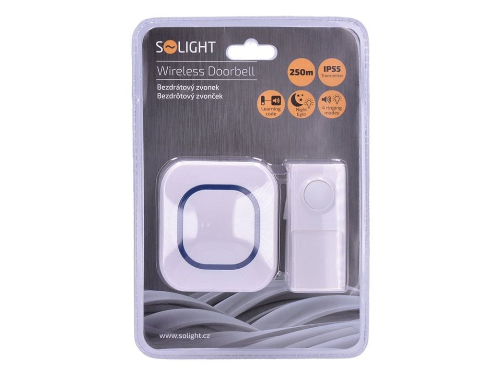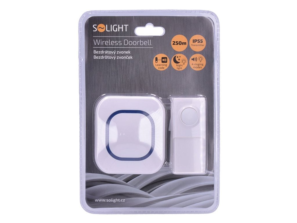 Solight bezdrátový zvonek, do zásuvky, 250m, bílý, learning code