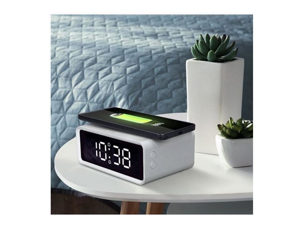 Budík s Qi bezdrátovou nabíječkou