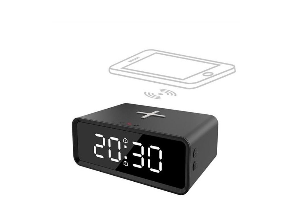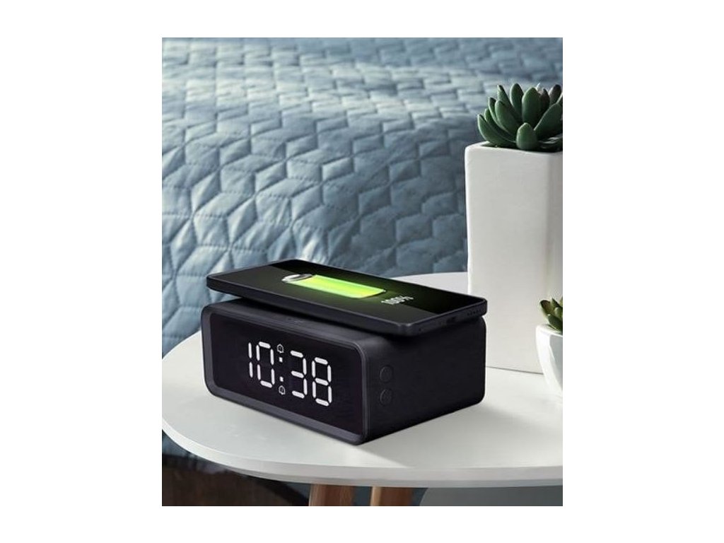 budík s bezdrátovou nabíječkou kompatibilní se standardem Qi