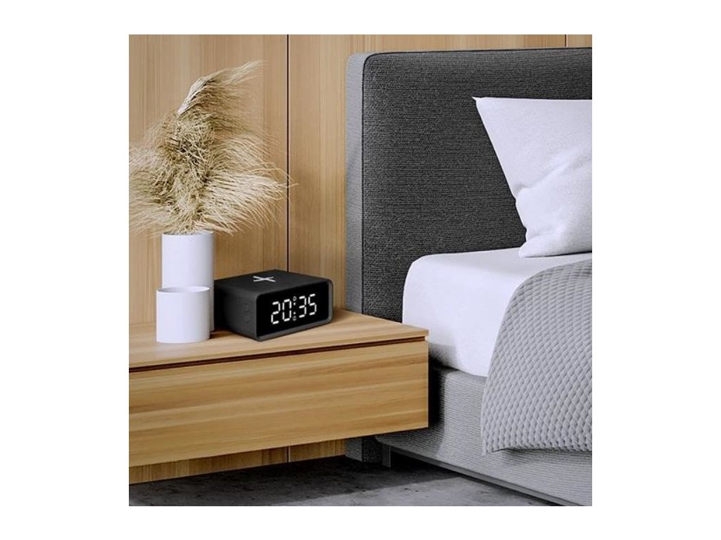 Budík s bezdrátovým nabíjením – stylový a praktický doplněk.Velký LED displej s vysokým rozlišením umožňuje volbu mezi zobrazením pouze času nebo střídáním času a teploty. Nastavitelný jas displeje (3 úrovně + vypnutí) zajišťuje pohodlné používání i v noc