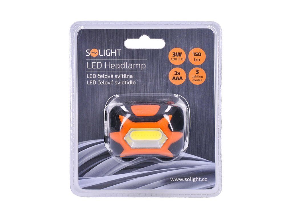 Solight čelová LED svítilna, 3W COB, 3x AAA