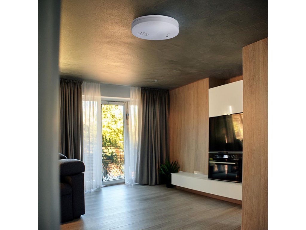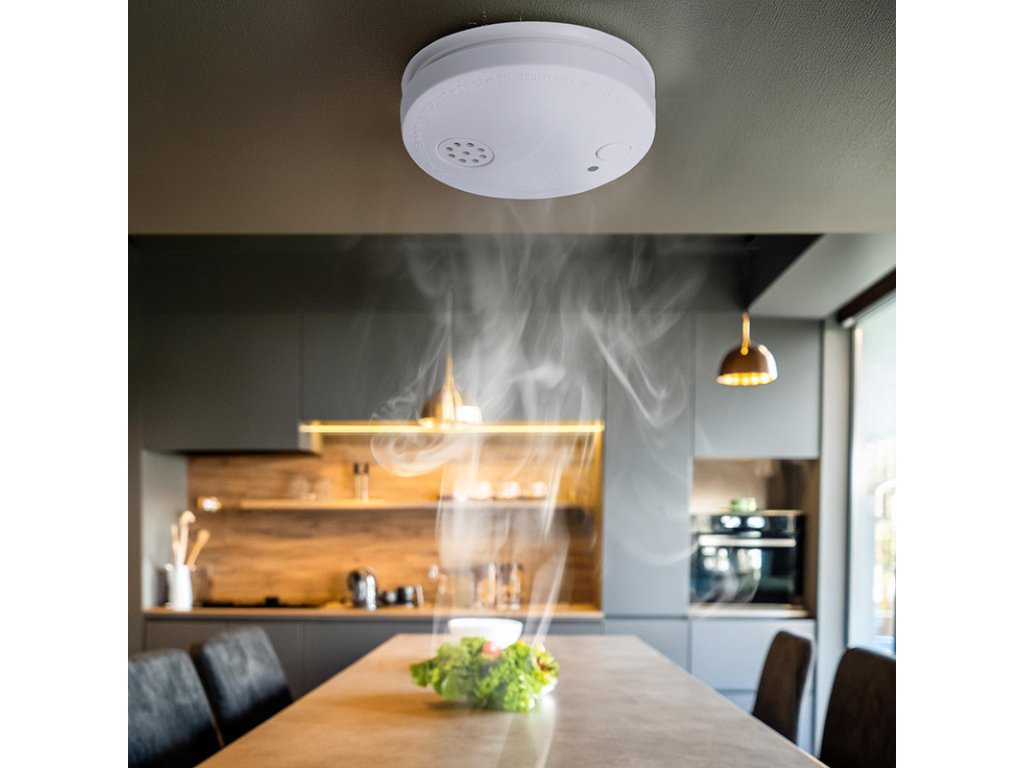 Kouřový detektor – včasné varování před požárem. Spolehlivý kouřový detektor s vysoce citlivým fotoelektrickým senzorem vás okamžitě upozorní na přítomnost kouře hlasitým alarmem (85 dB).