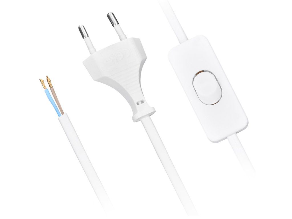Solight flexo kabel, 2m, 2 x 0,75mm2, bílá, plochá, vypínač