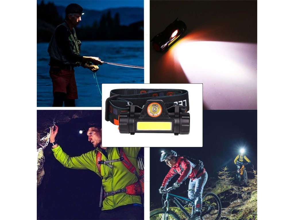 nabíjecí LED čelová svítilna s bodovým a prostorovým světlem