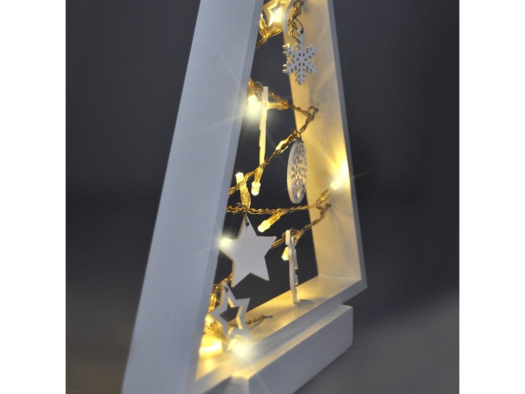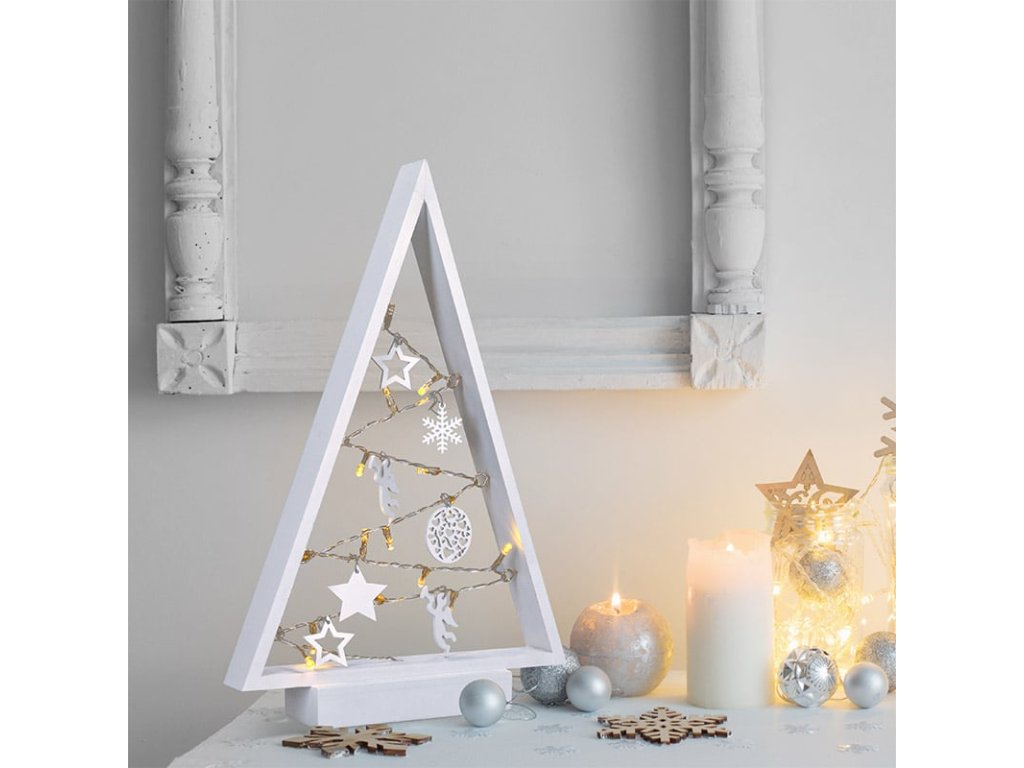 LED dřevěný vánoční stromek s ozdobami