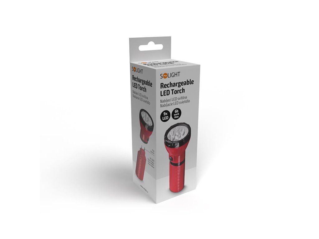 Solight LED nabíjecí svítilna, 9 x LED, červenočerná, plug-in