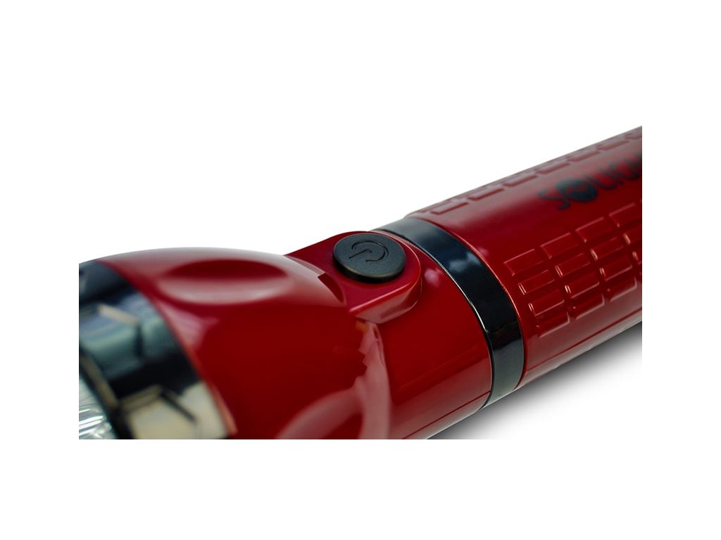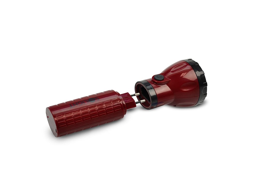 Svítilna se napájí přímo ze sítě pomocí klasického plug-in systému (AC 230V / 50Hz), což z ní činí velmi praktické a snadno použitelné zařízení bez potřeby externích nabíječek či kabelů. Její kompaktní design v kombinaci s červeno-černým barevným provedením působí moderně a robustně zároveň.