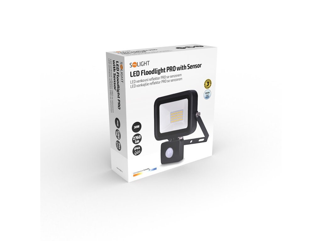 Solight LED reflektor PRO se senzorem, 30W, 2760lm, 5000K, IP44