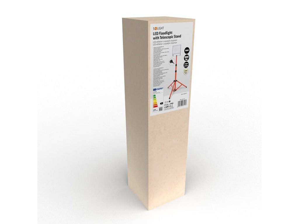 Solight LED reflektor s vysokým stojanem, 100W, 9000lm, 4000K, kabel se zástrčkou, IP65