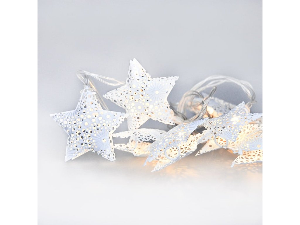 Solight LED řetěz vánoční hvězdy, kovové, bílé, 10LED, 1m, 2x AA, IP20
