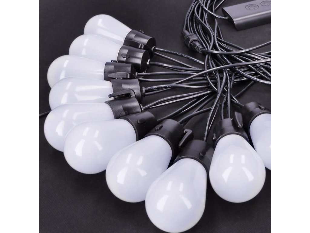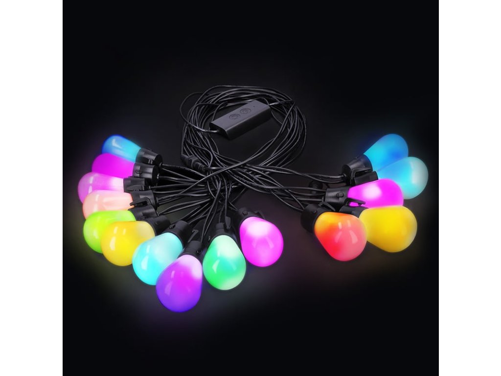 Solight LED smart venkovní řetěz s RGB žárovkami, bluetooth, 15 žárovek, 14m+6m, 10W