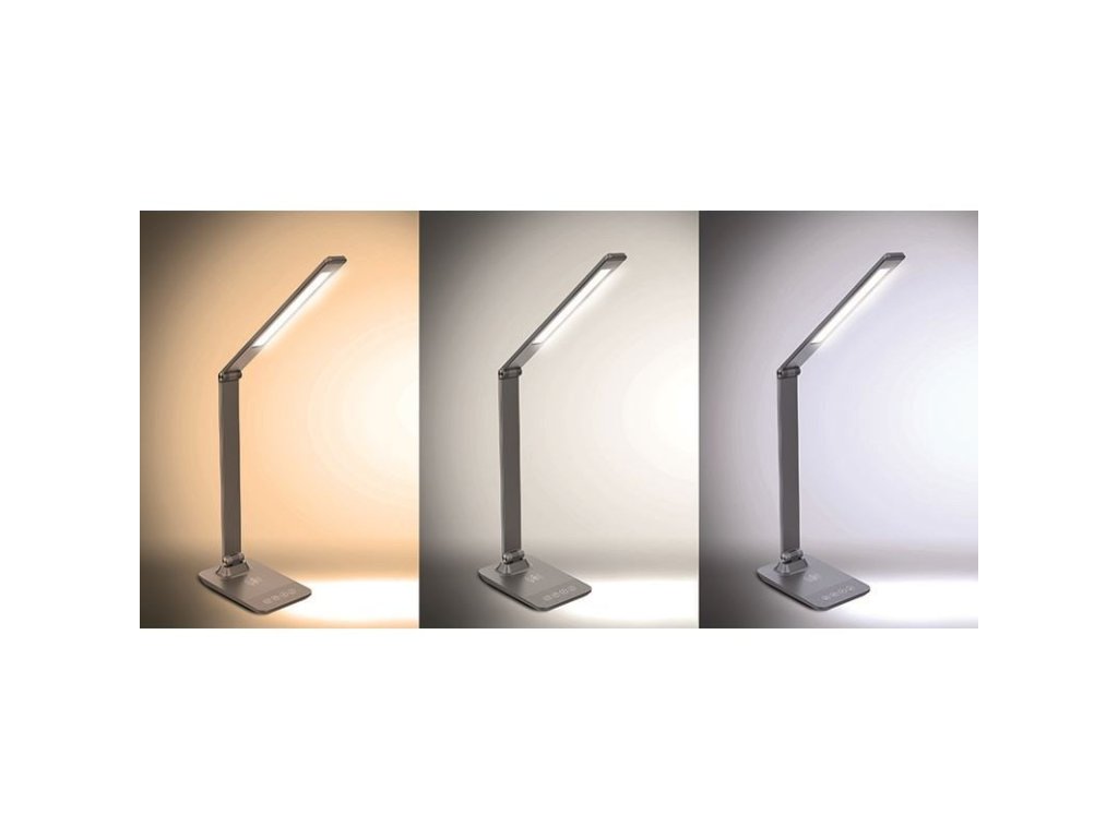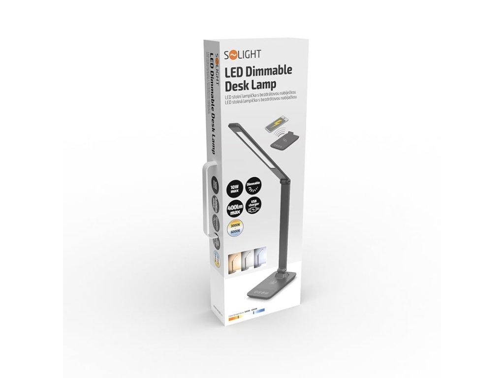 Solight LED stmívatelná lampička s bezdrátovým nabíjením, 10W, změna chromatičnosti, šedá