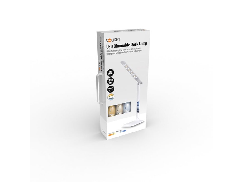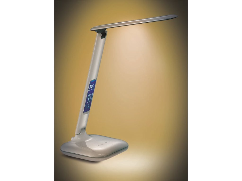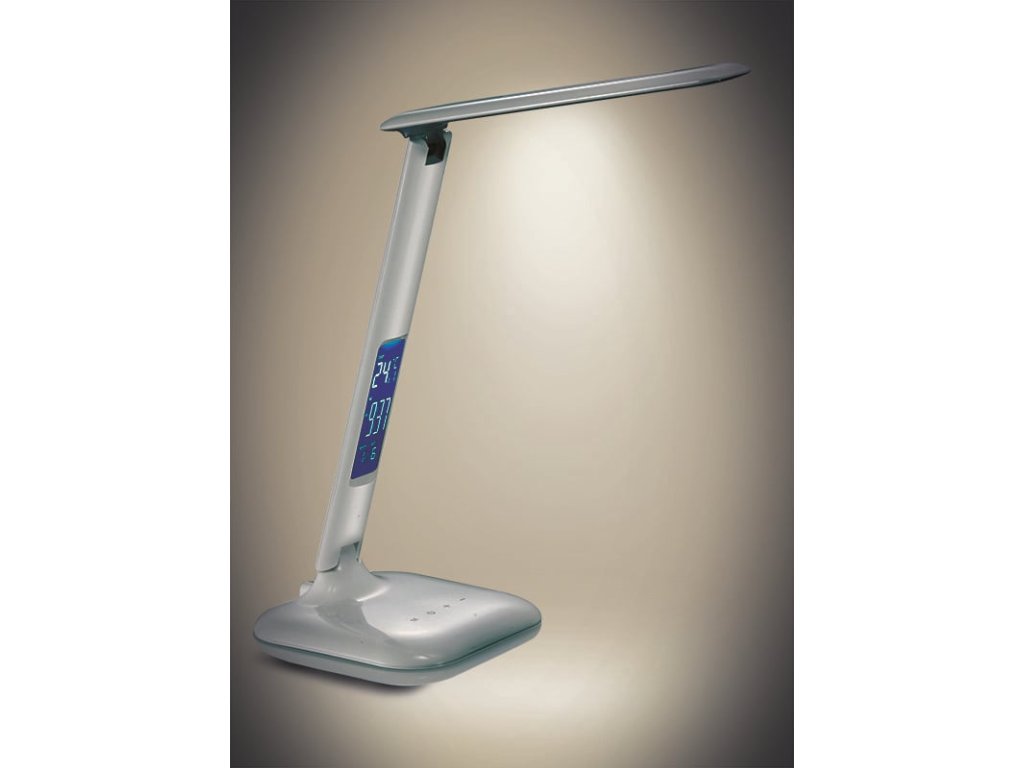 Solight LED stmívatelná stolní lampička s displejem, 6W, volba teploty světla, bílý lesk
