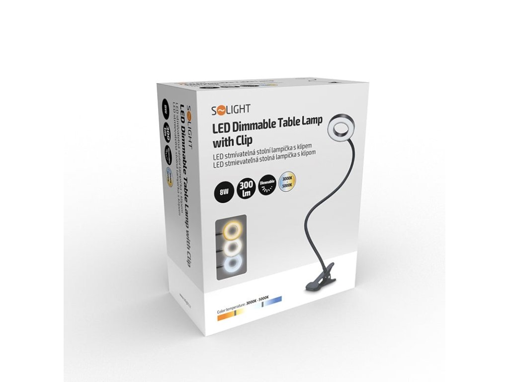Solight LED stmívatelná stolní lampička s klipem, 300lm, nastavitelná teplota světla, USB