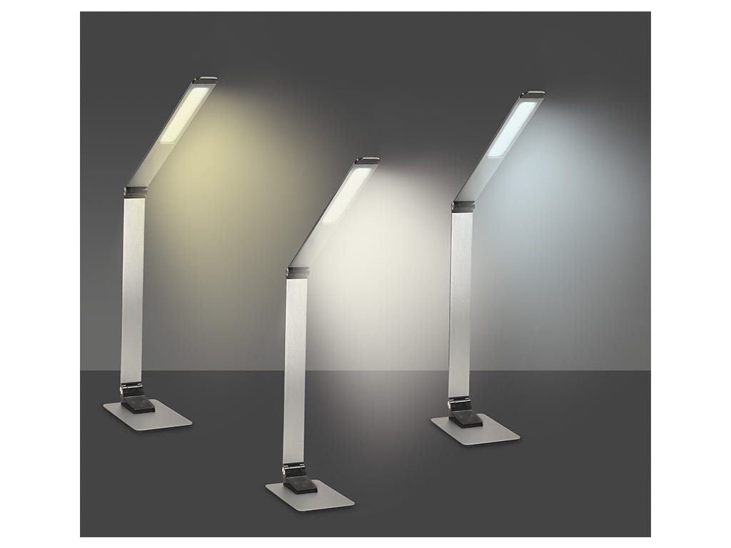 Solight LED stolní lampička stmívatelná, 11W, změna chromatičnosti, broušený hliník, stříbrná