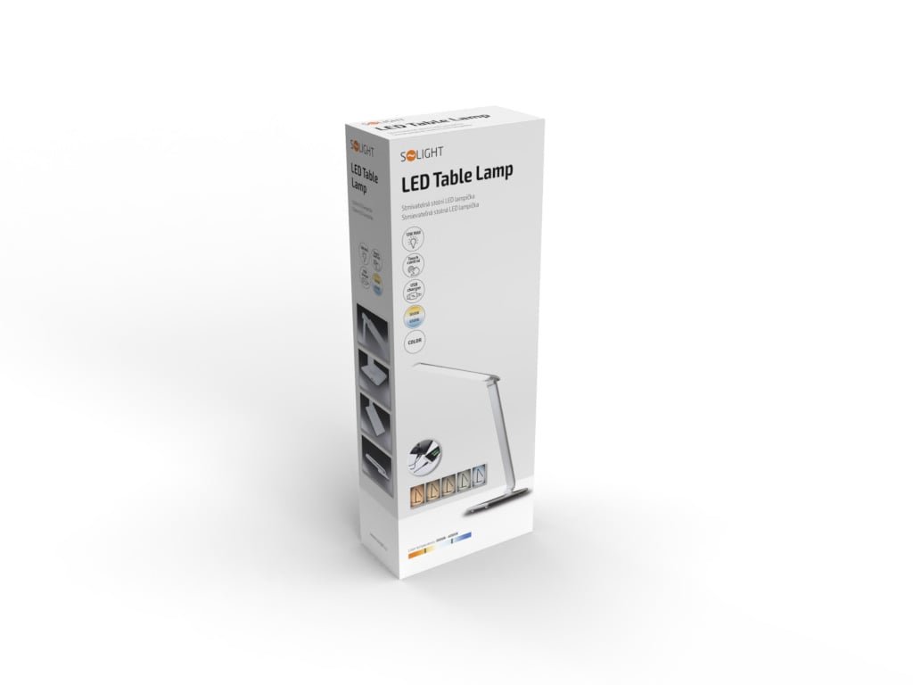 Solight LED stolní lampička stmívatelná, 12W, volba teploty světla, USB, bílý lesk
