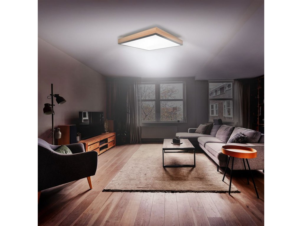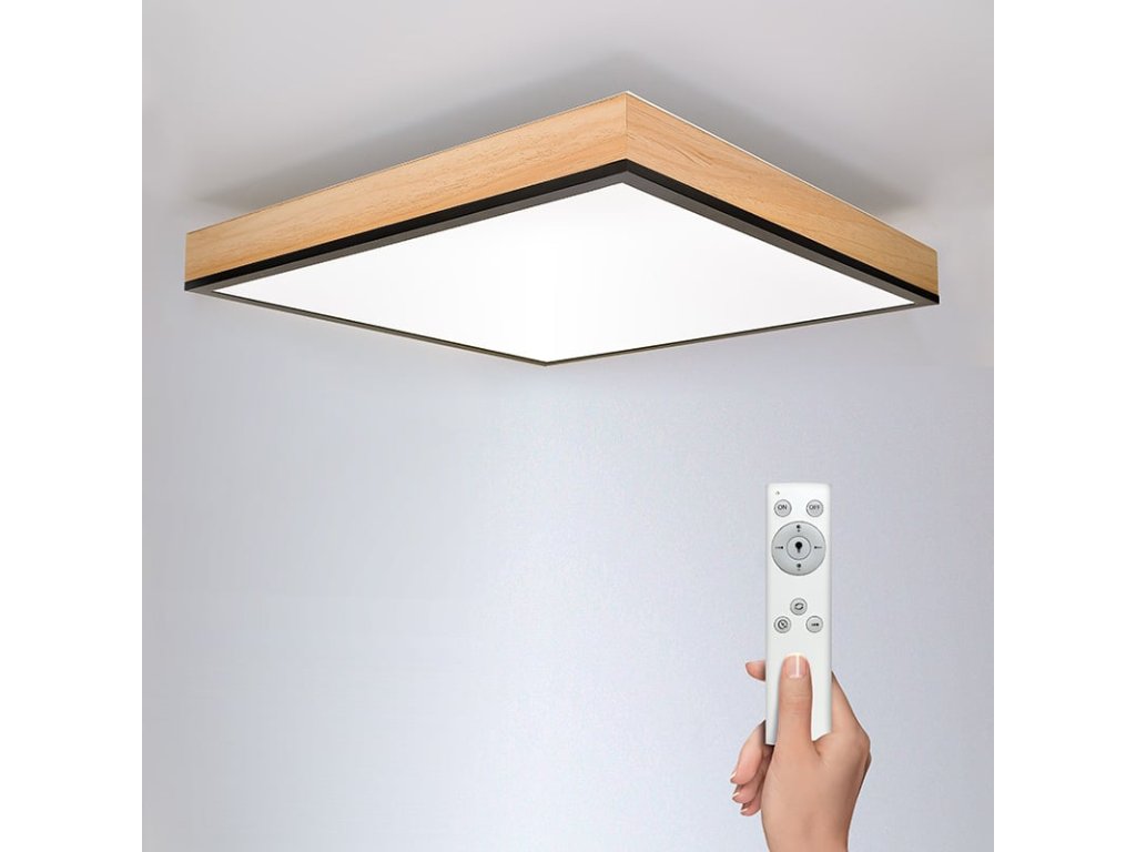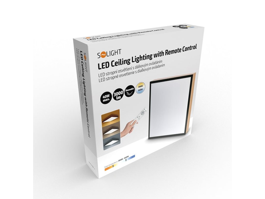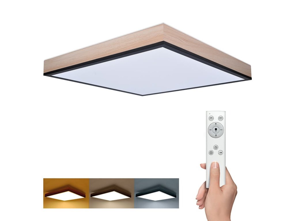 Solight LED stropní osvětlení s dálkovým ovládáním, čtvercové, dekor dřeva
