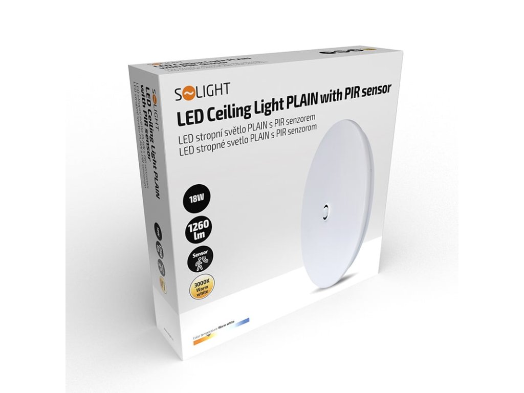 Solight LED stropní světlo PLAIN s PIR sensorem, 18W, 1260lm, 3000K, kulaté, 33cm