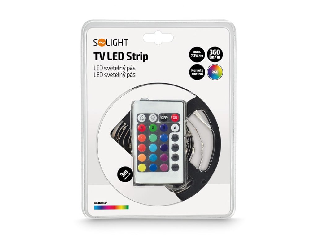 Solight LED světelný pás, RGB, 3m, sada s 12V adaptérem a dálk. ovladačem, 7,2W/m, IP20
