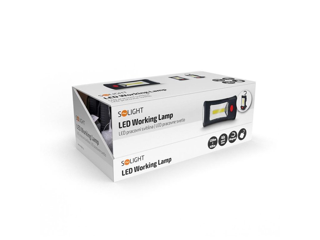Solight LED svítilna pracovní, 3W COB + 3 SMD LED, hák + magnet, 3 x AAA