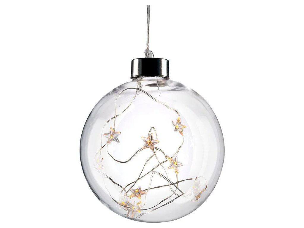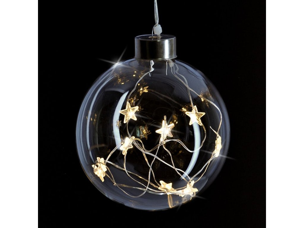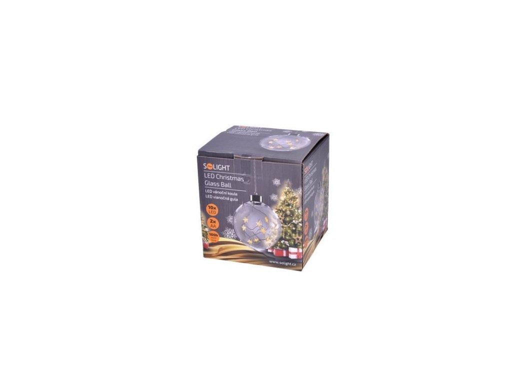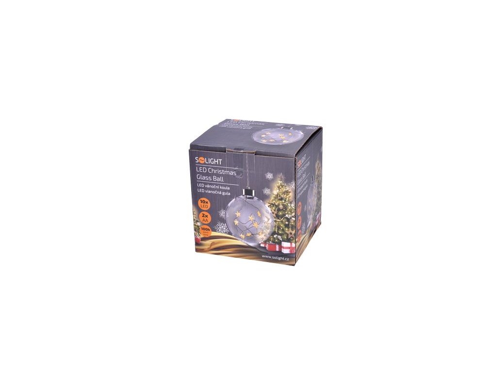Solight LED vánoční koule skleněná, 10LED, 2x AA, IP20