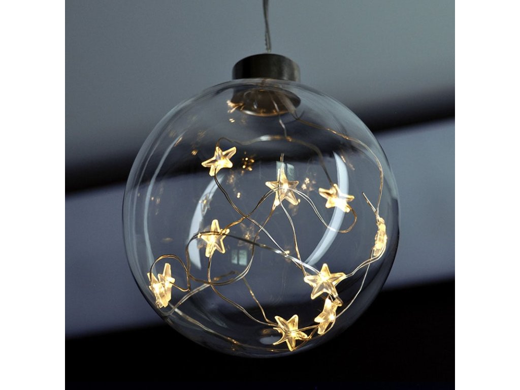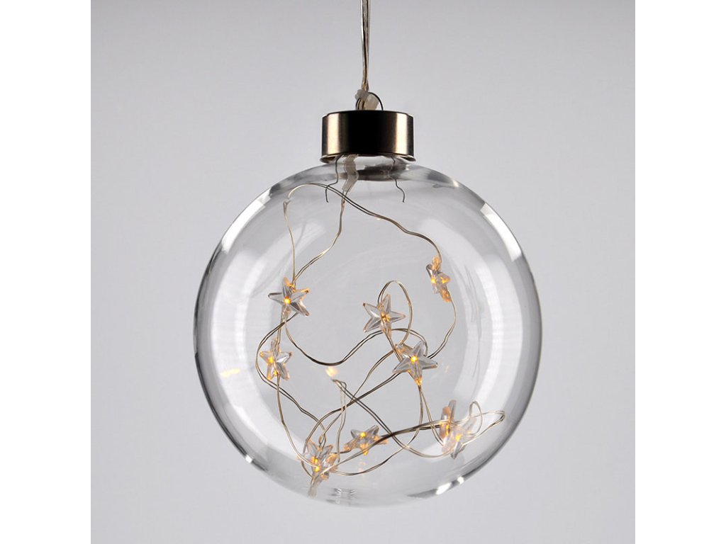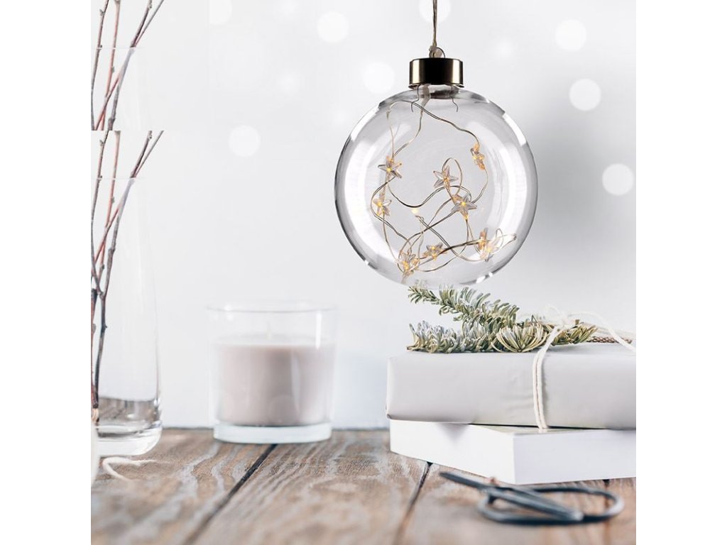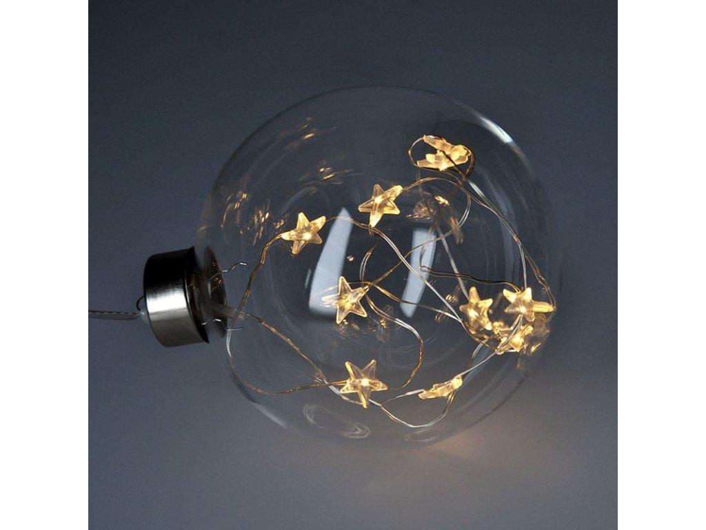 Solight LED vánoční koule skleněná, 10LED, 2x AA, IP20