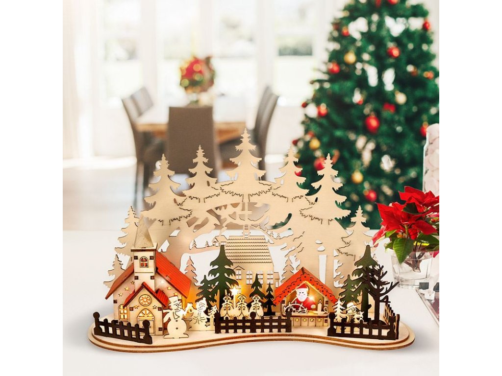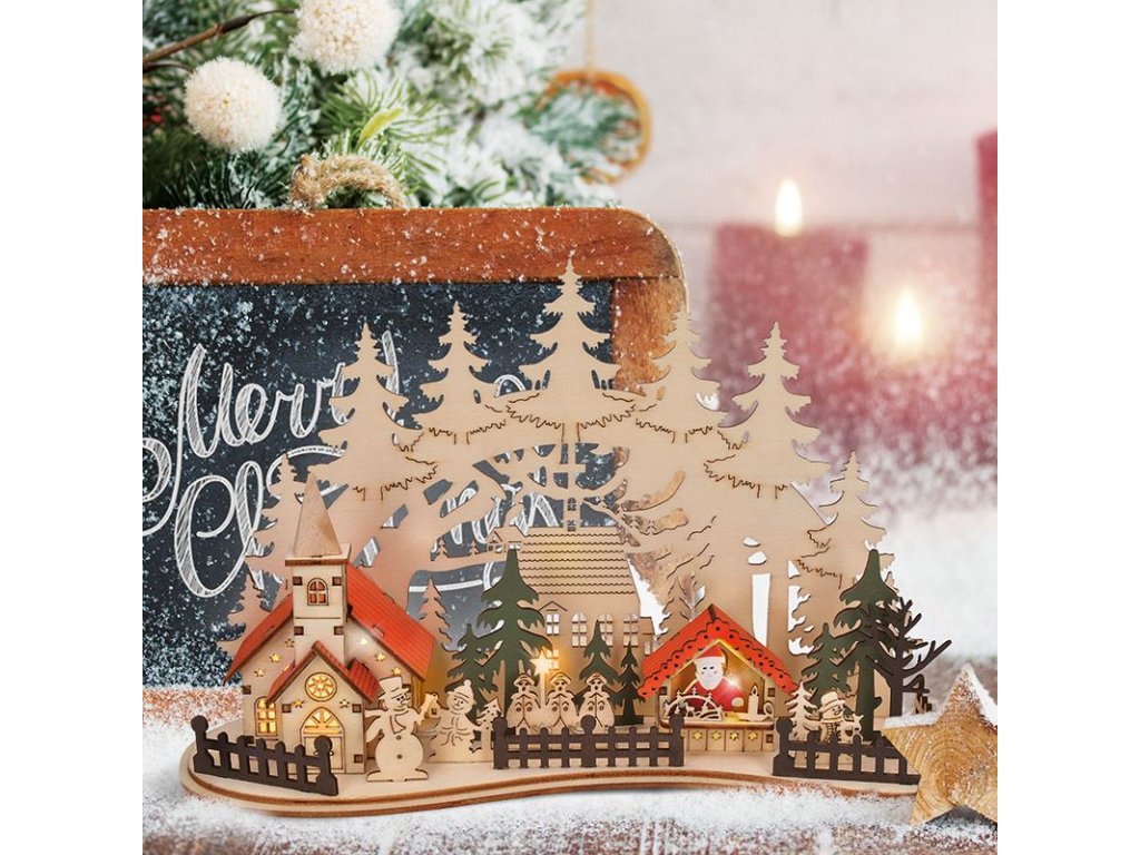 LED vánoční městečko s kostelem