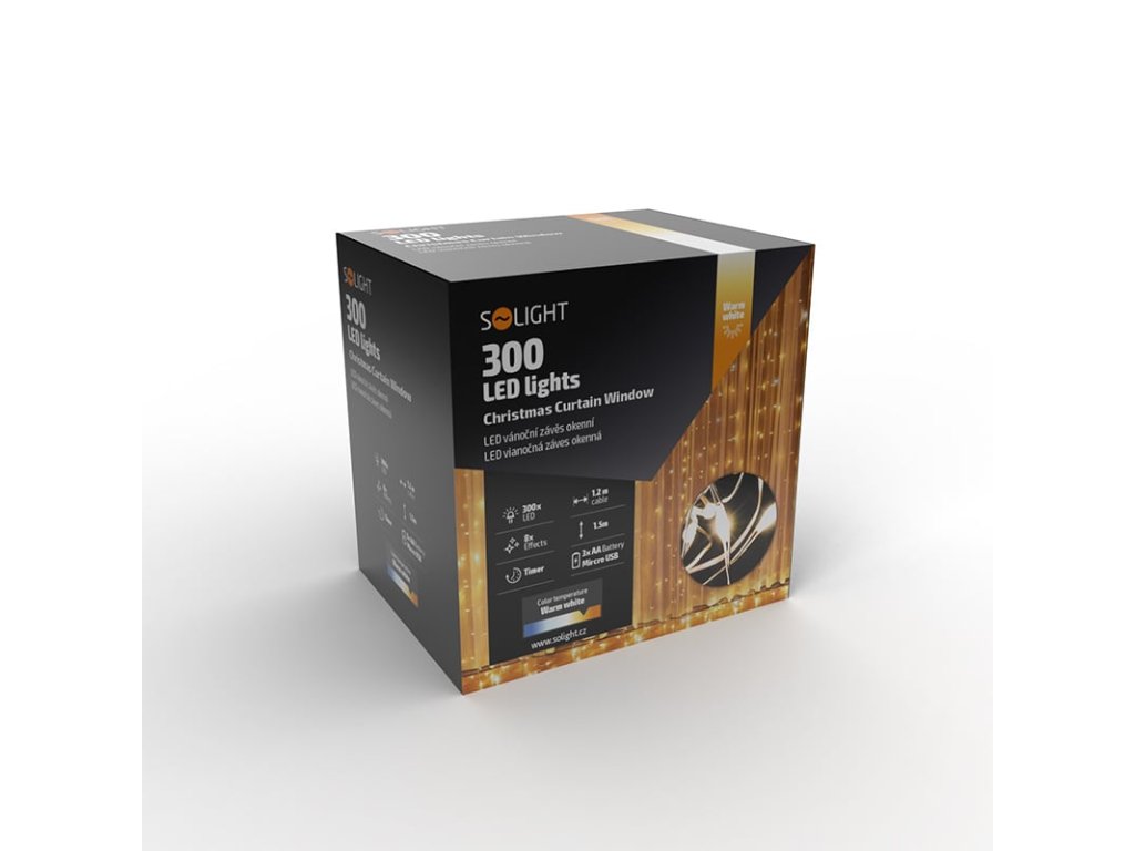 Solight LED vánoční závěs okenní, stříbrný, 300x mini LED, časovač, 8 funkcí, USB