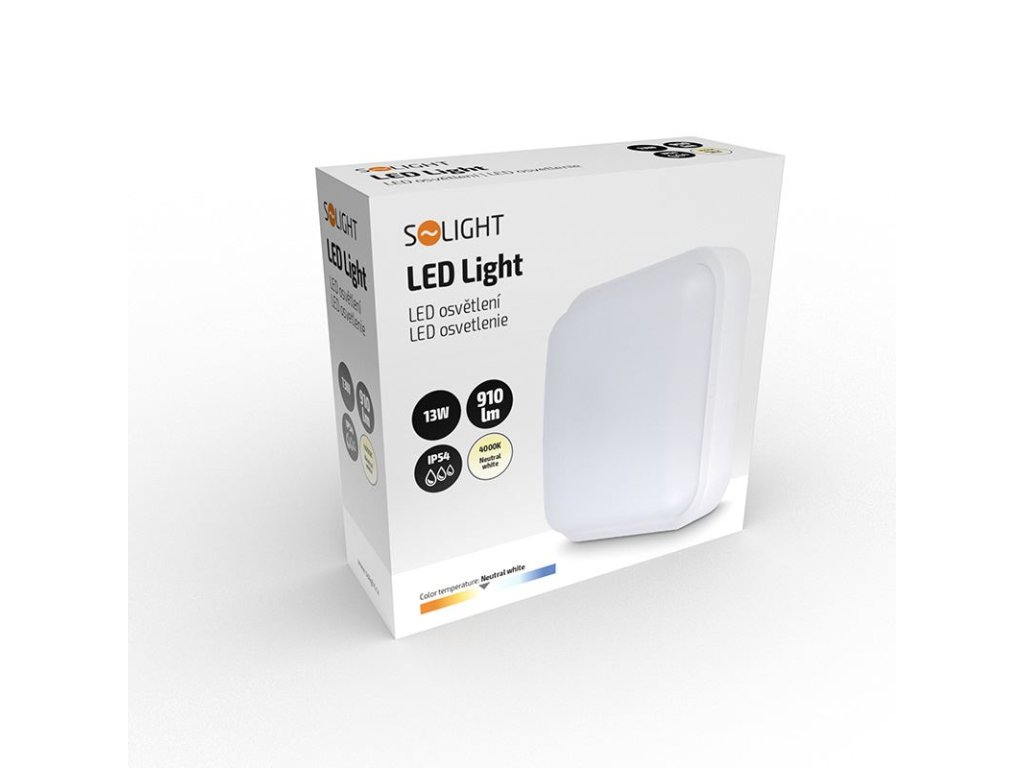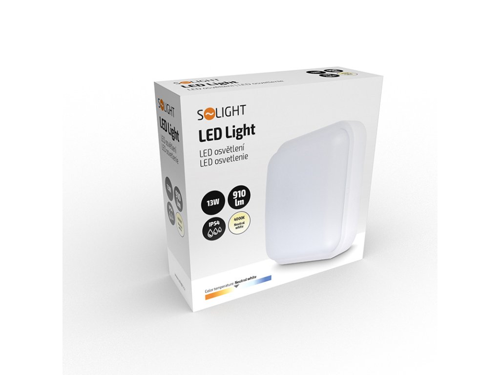 Solight LED venkovní osvětlení čtvercové, 13W, 910lm, 4000K, IP54, 16cm