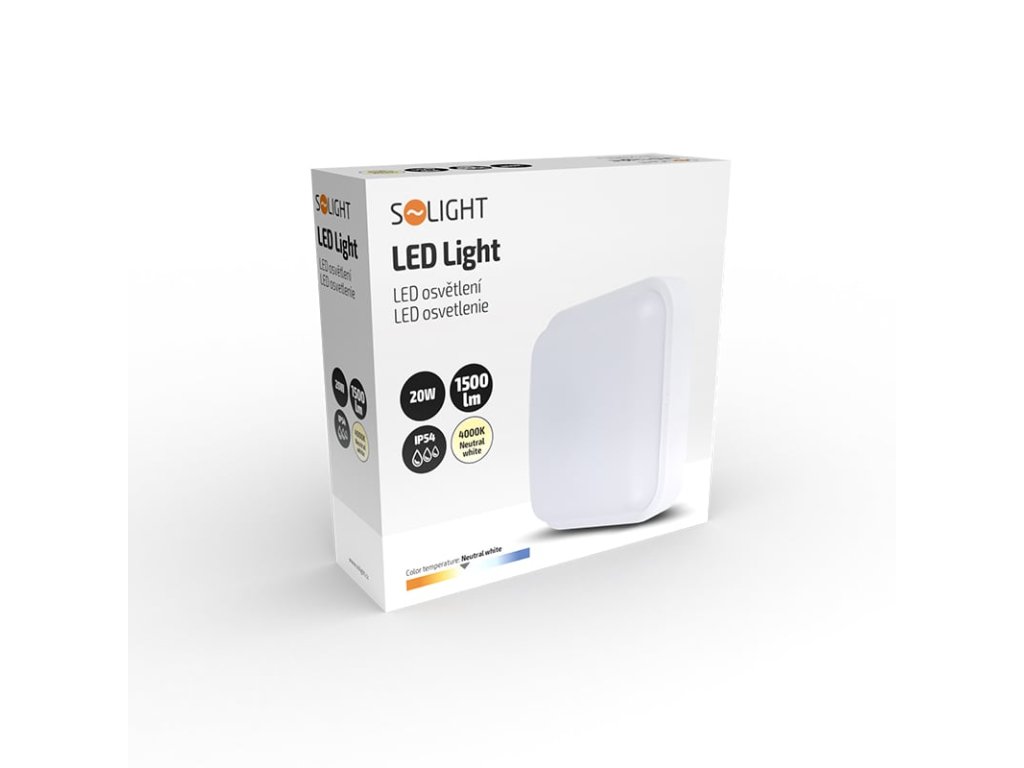 Solight LED venkovní osvětlení čtvercové, 20W, 1500lm, 4000K, IP54, 19cm