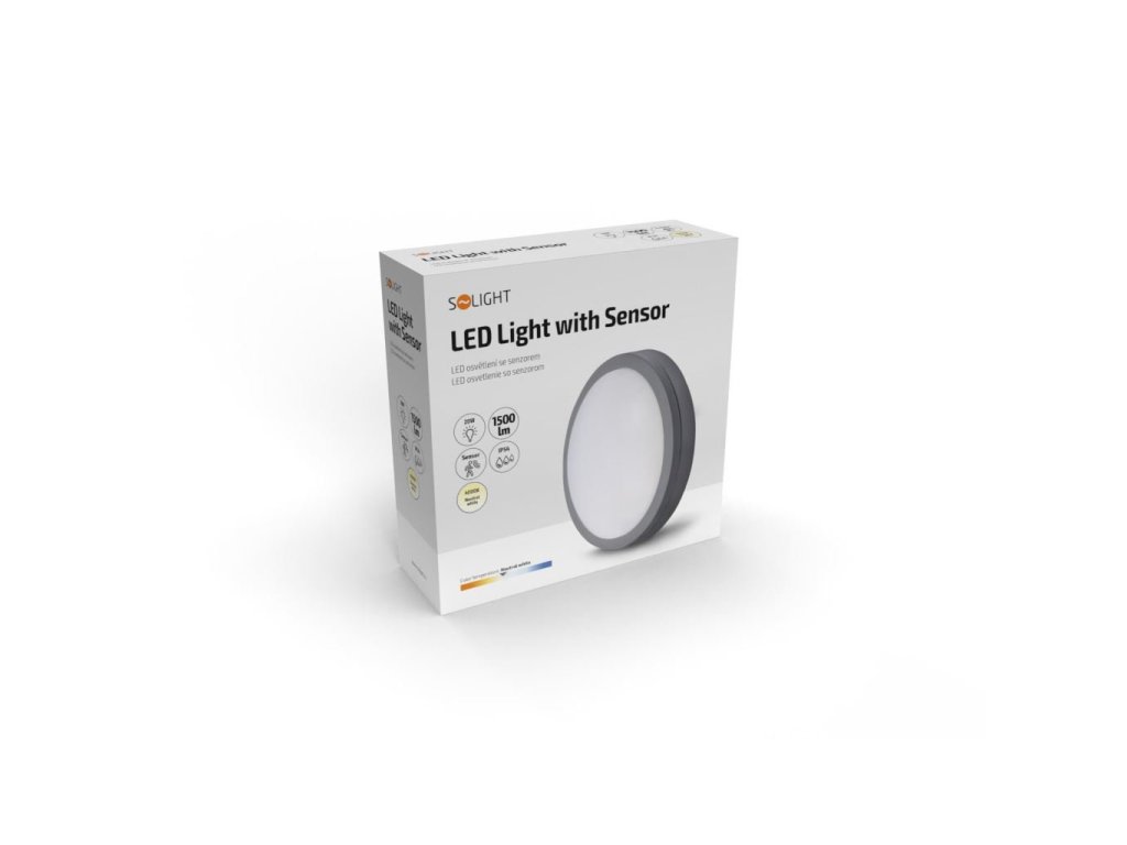 Solight LED venkovní osvětlení se senzorem Siena, šedé, 20W, 1500lm, 4000K, IP54, 23cm