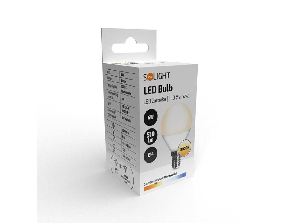 Solight LED žárovka, miniglobe, 6W, E14, 3000K, 510lm, bílé provedení