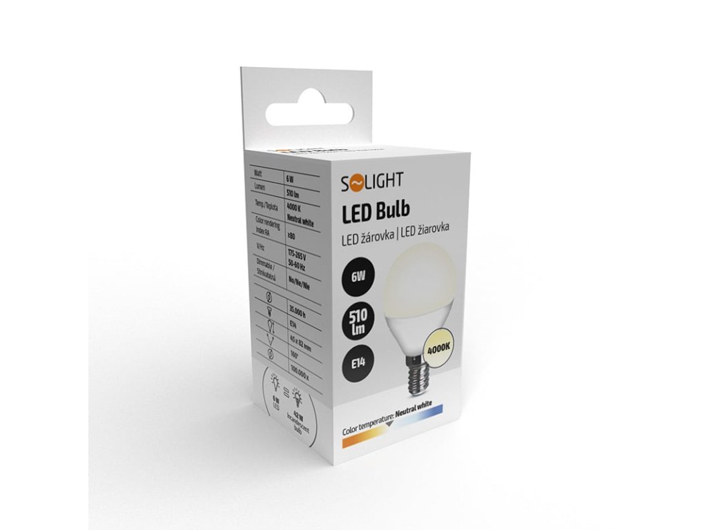 Solight LED žárovka, miniglobe, 6W, E14, 4000K, 510lm, bílé provedení