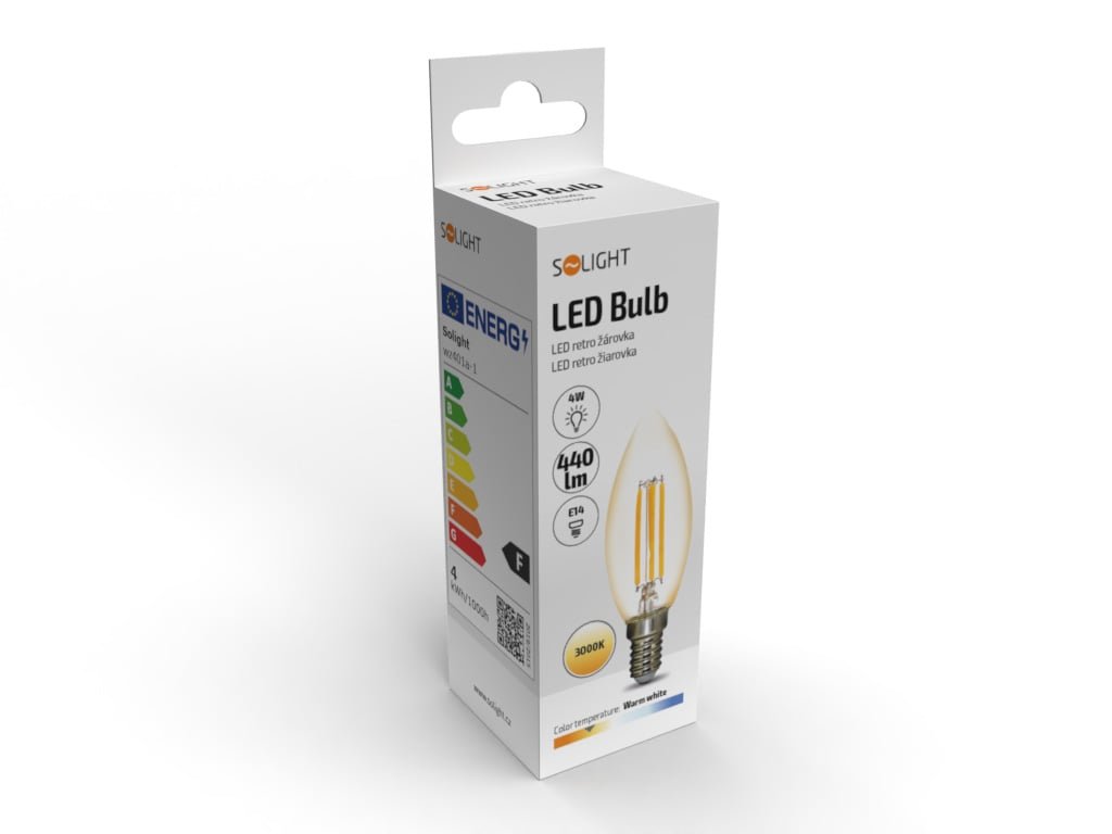 Solight LED žárovka retro, svíčka 4W, E14, 3000K, 360°, 440lm