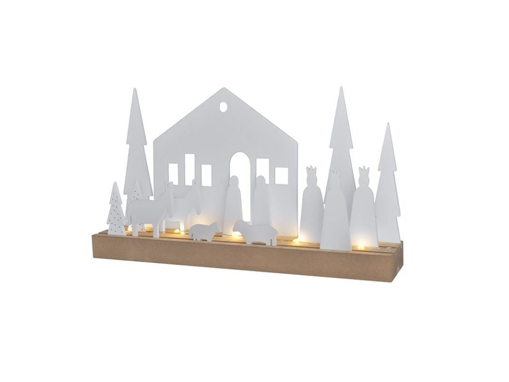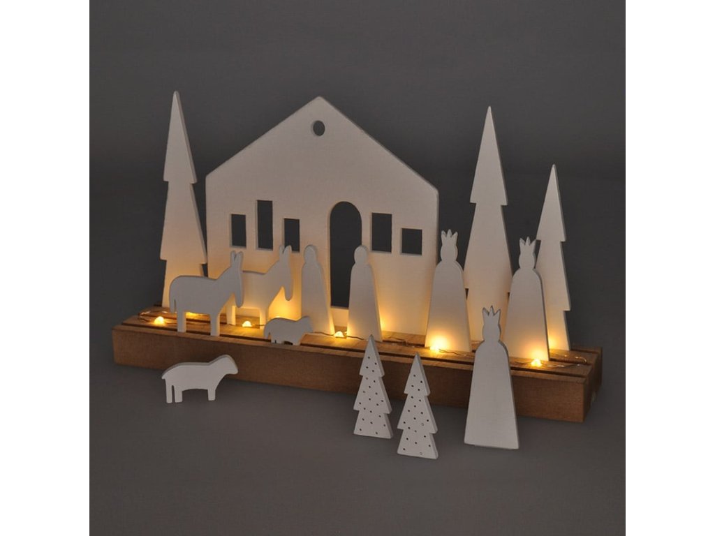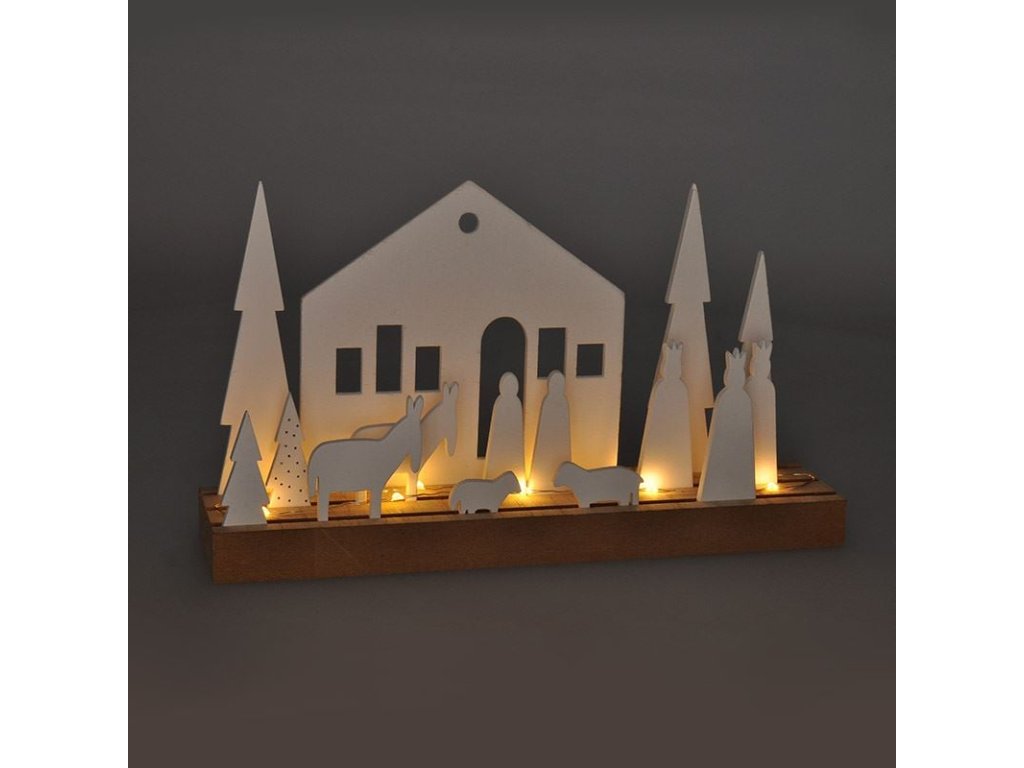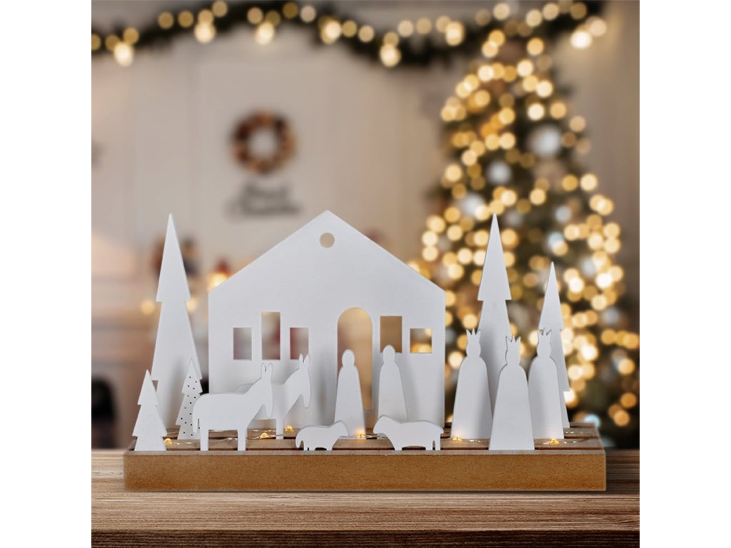 LED modulární zimní vesnička s 15 vánočními prvky, které lze libovolně umístit na základnu