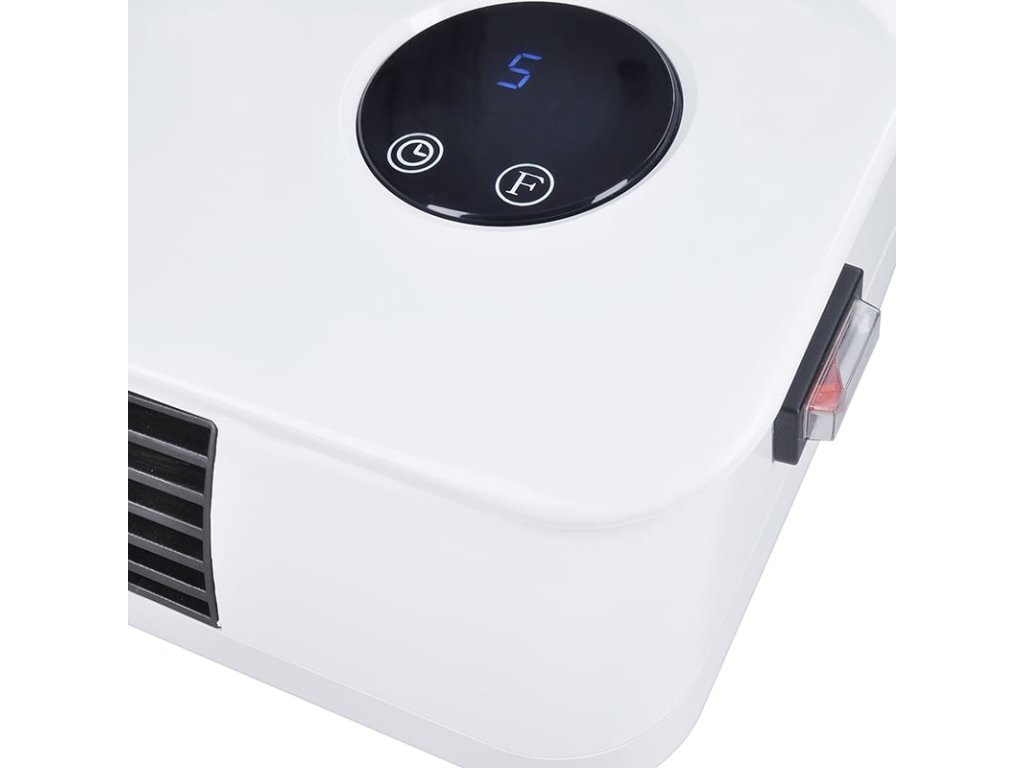 Keramické nástěnné topidlo 2000W s moderním designem a LED displejem. Nabízí dva stupně výkonu (1000W / 2000W), ventilátor a časovač (týdenní + 24h). Díky IP24 ochraně je odolné proti vlhkosti a vhodné i do koupelen. Automatické vypnutí při náhlém poklesu teploty chrání před zbytečnou spotřebou. Dálkové ovládání pro maximální komfort. Vhodné pro místnosti do 20 m2. Barva: bílá, napájení 230V/50Hz.