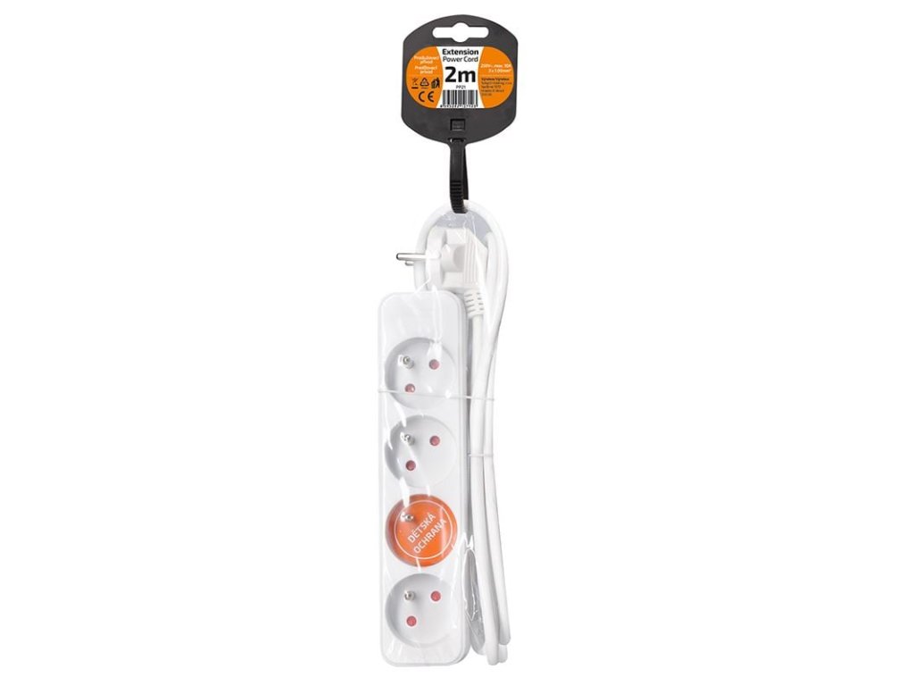 Prodlužovací přívod, 2m, 4 zásuvky.