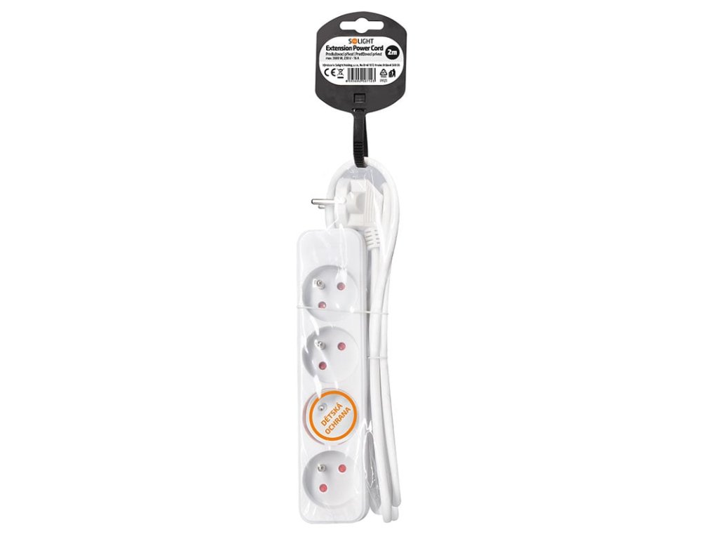 Solight prodlužovací přívod, 4 zásuvky, bílý, 2m