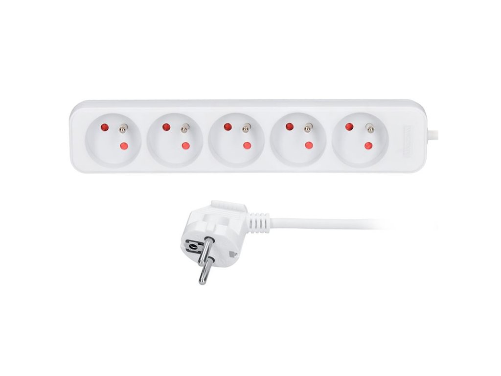 Solight prodlužovací přívod, 5 zásuvek, bílý, 1,5m