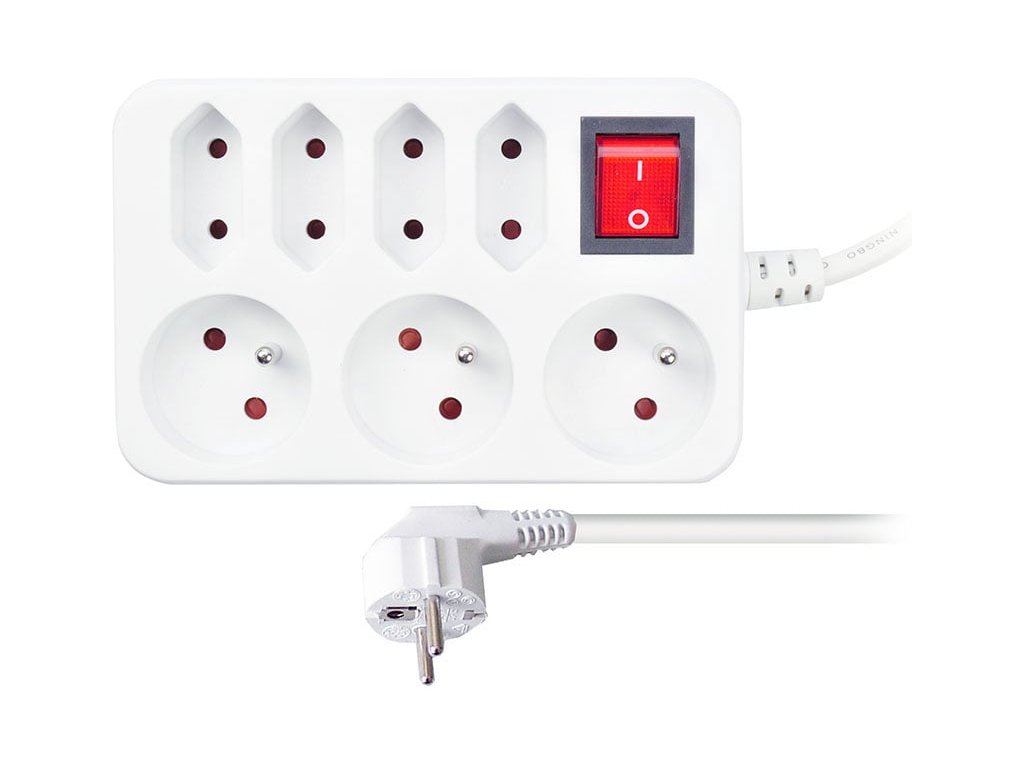 Solight prodlužovací přívod, 7 zásuvek, bílý, vypínač, 2m