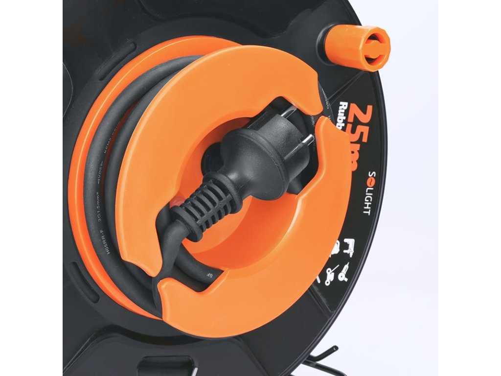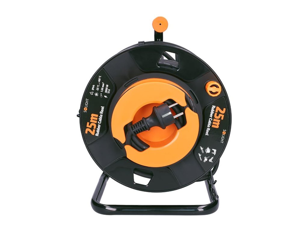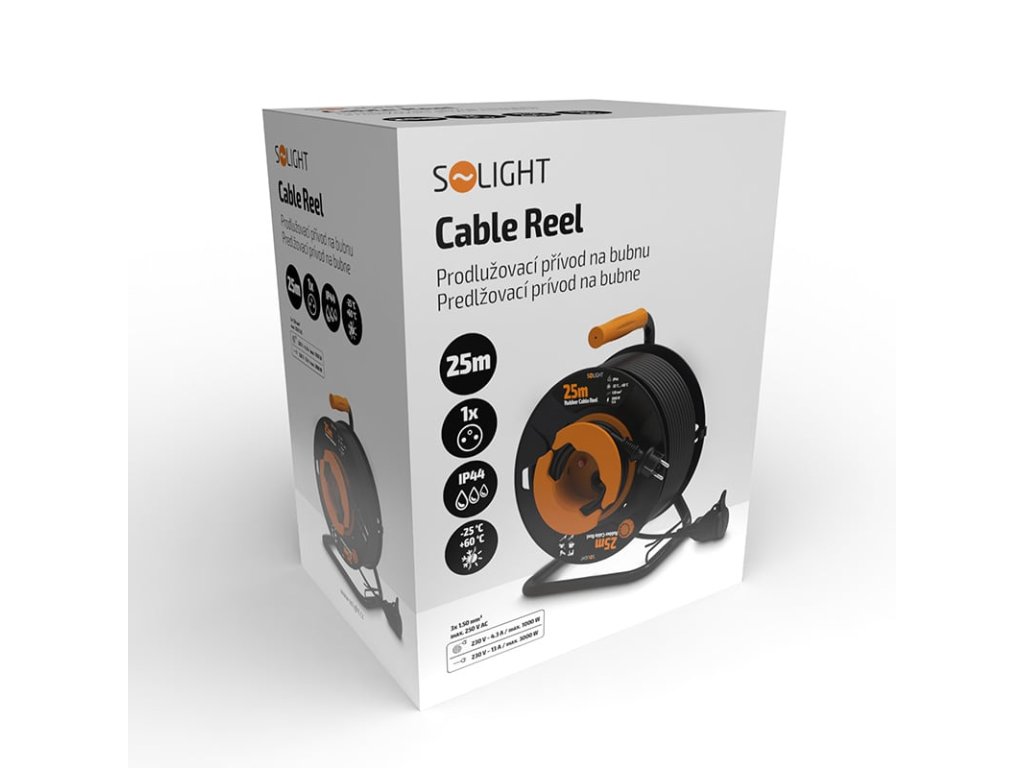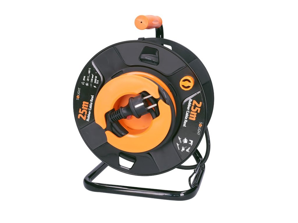 Solight prodlužovací přívod na bubnu, 1 zásuvka, venkovní, 25m gumový kabel, 3x 1,5mm2, IP44