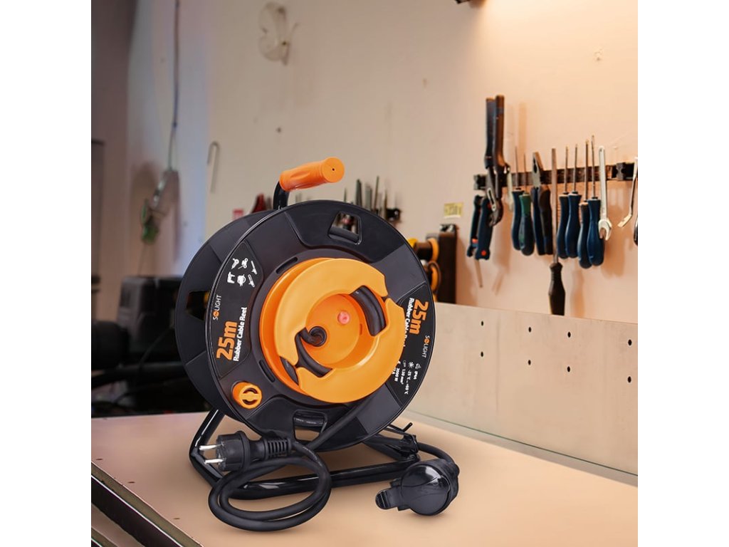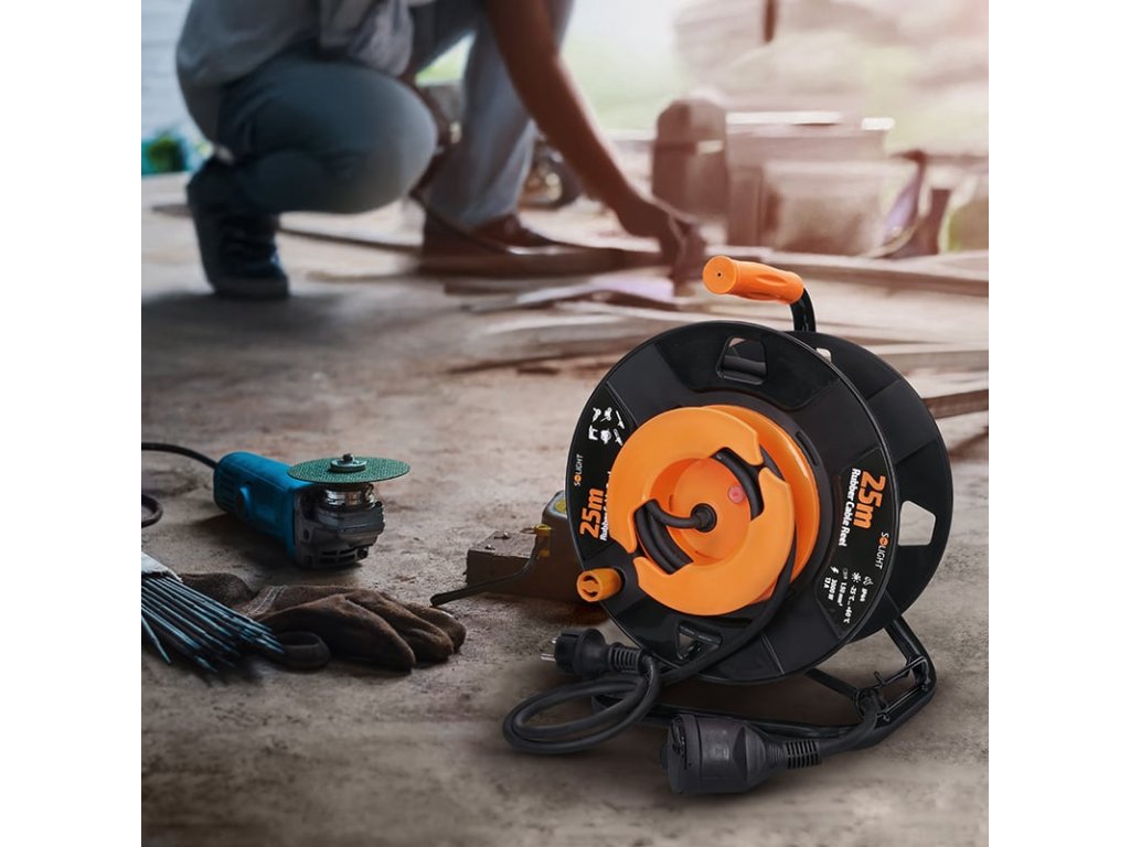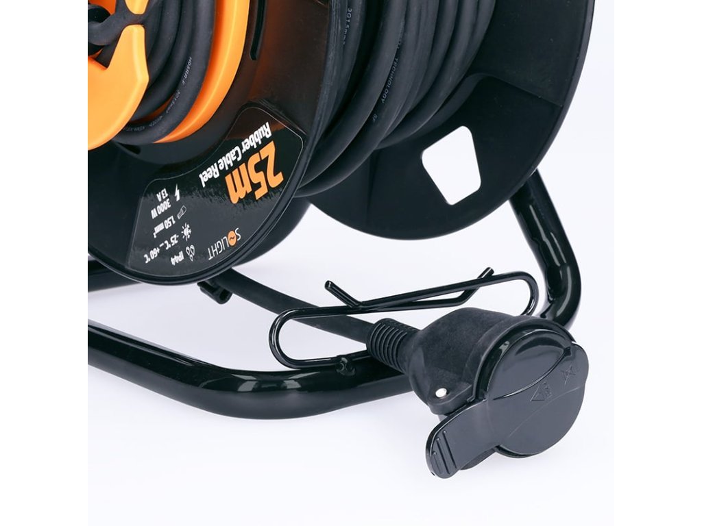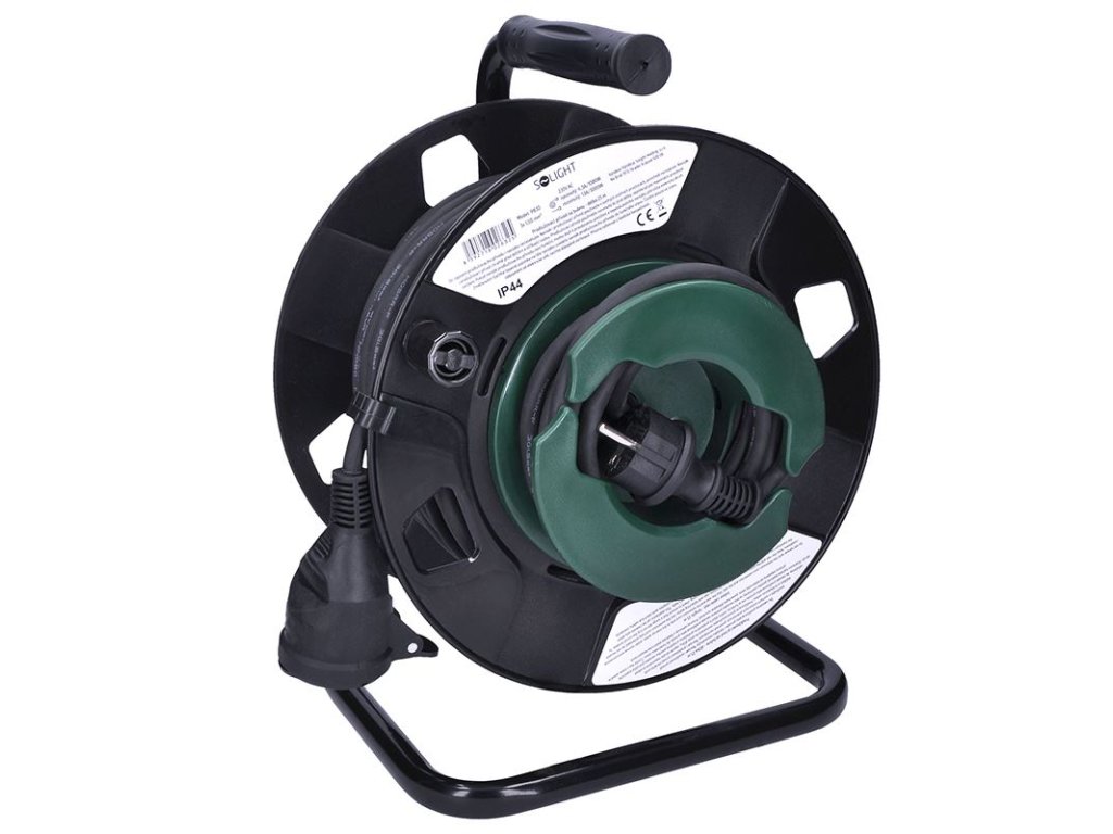 Solight prodlužovací přívod na bubnu, 1 zásuvka, venkovní, 25m gumový kabel, 3x 1,5mm2, IP44