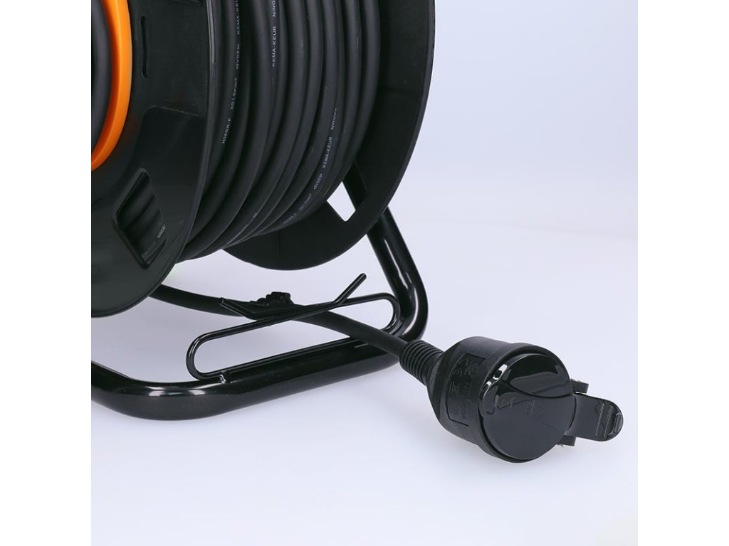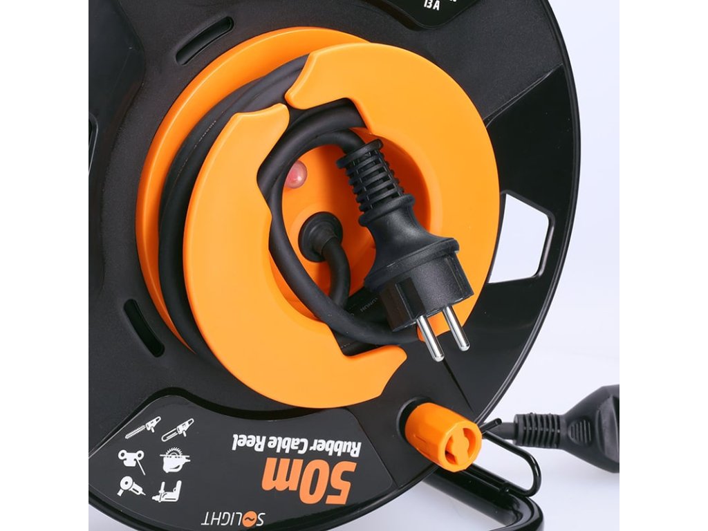 Gumový kabel s vodiči o průřezu 3×1,5 mm2 je vhodný pro venkovní použití i vnitřní prostory. Buben je vybaven zásuvkou s dětskými pojistkami a tepelnou pojistkou, která zajišťuje bezpečnost při přetížení nebo neúplném odvinutí kabelu. Produkt splňuje stupeň krytí IP44, který zajišťuje ochranu proti stříkající vodě.